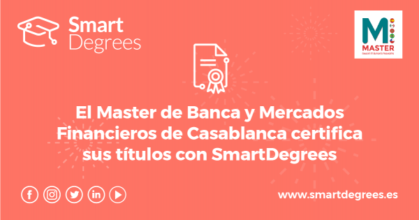 El Máster de Banca y Mercados Financieros de Casablanca, que realizan las universidades Hassan II de Casablanca, de Marruecos, y Cantabria, de España, ya dispone de sus primeros títulos universitarios en blockchain, registrados y certificados por SmartDegrees.