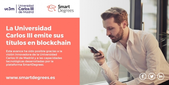 La Universidad Carlos III de Madrid (UC3M) ya dispone de los primeros títulos universitarios en blockchain, registrados y certificados por la startup española SmartDegrees.